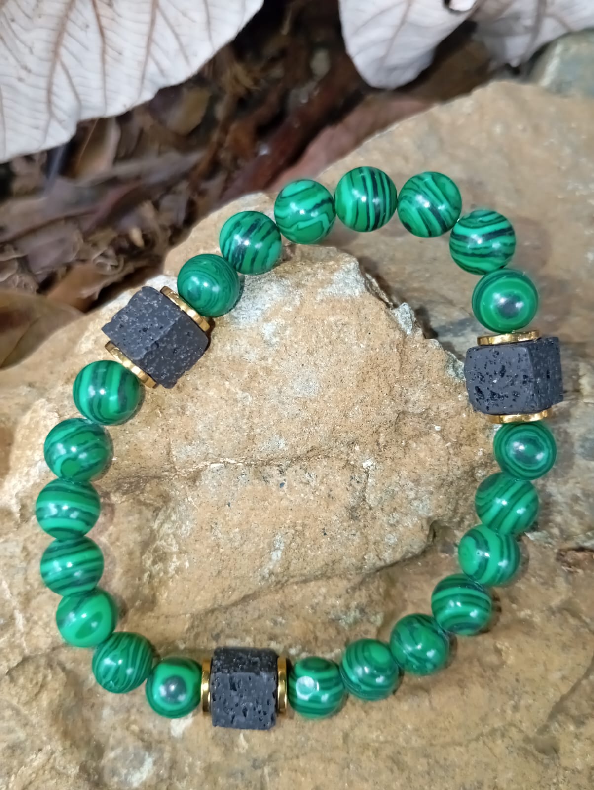 Pulsera volcan tangxing color verde en piedra con visel dorado para todas tus ocasiones